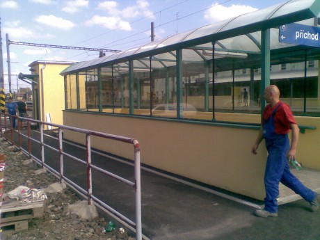 Výroba a montáž ocelové konstrukce ostrovního nástupiště vč. protikorozního nátěru Hempel.